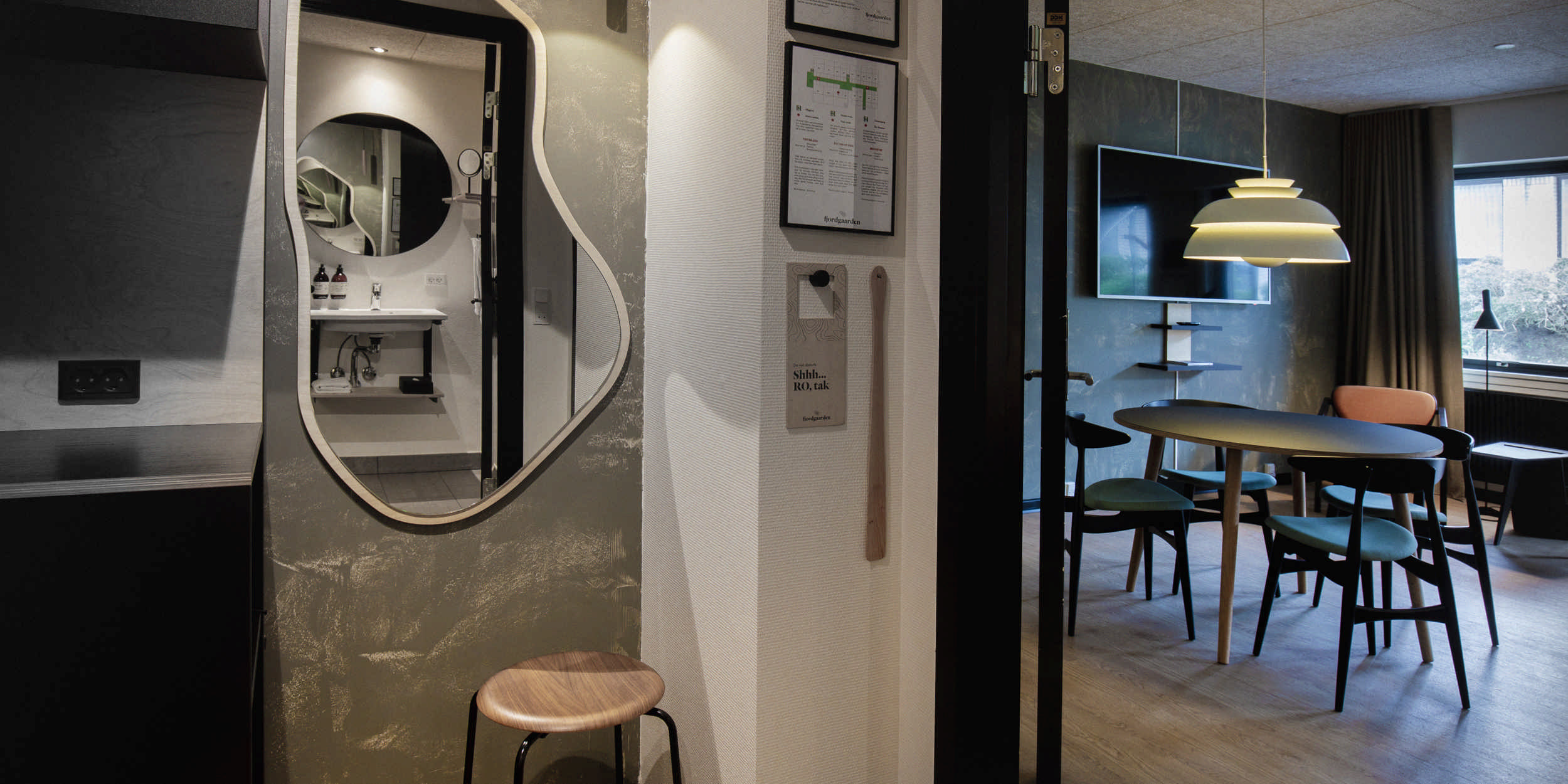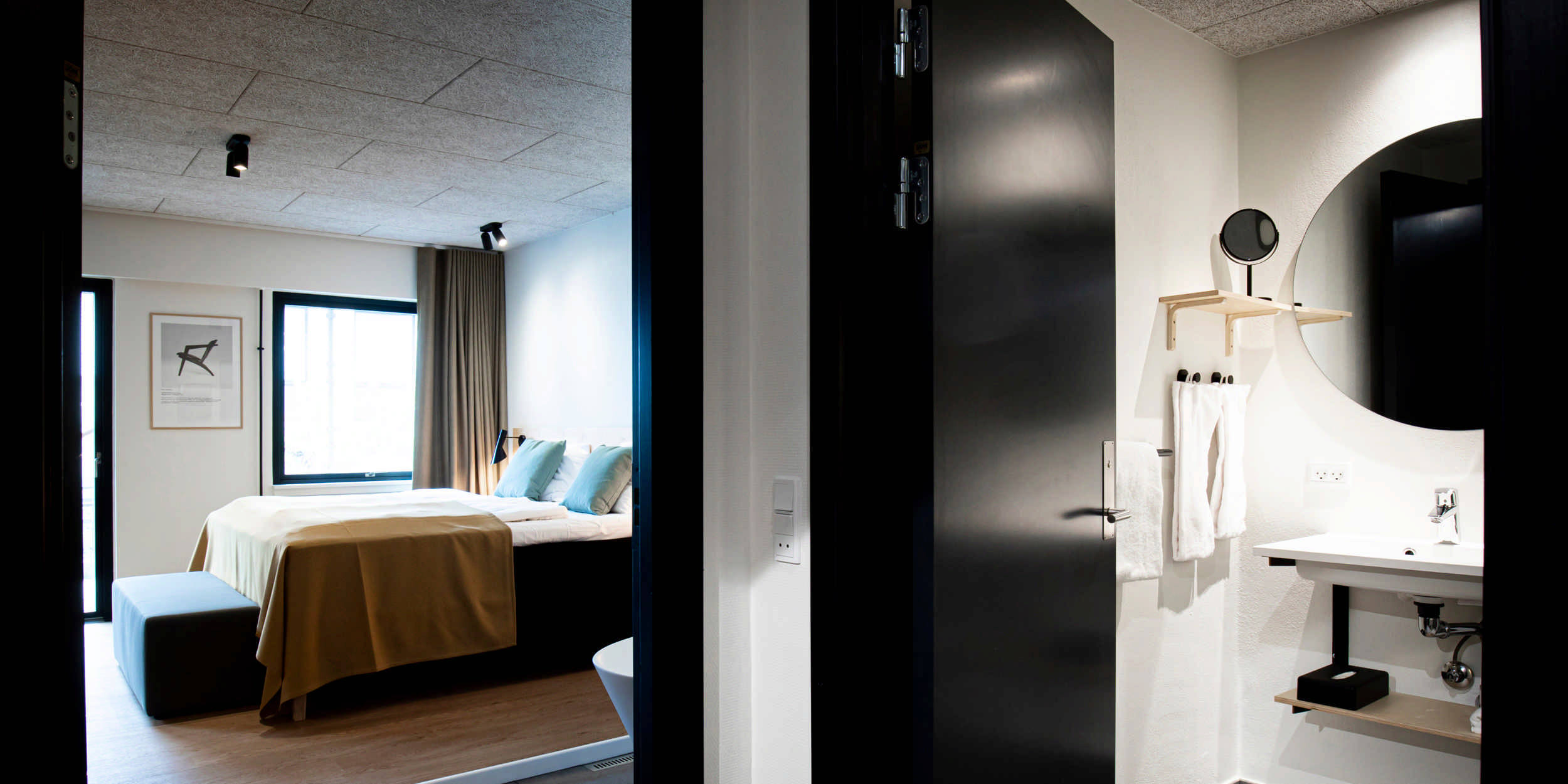Vores Junior Suiter er store rummelige nyrenoverede værelser med egen terrasse. Værelset er indrettet i nordiske æstetik med dansk design - perfekt til RO og afslapning. Vores Junior Suiter tilbyder en unik kombination af privatliv og diskret luksus, ideelle for gæster, der søger et længerevarende ophold