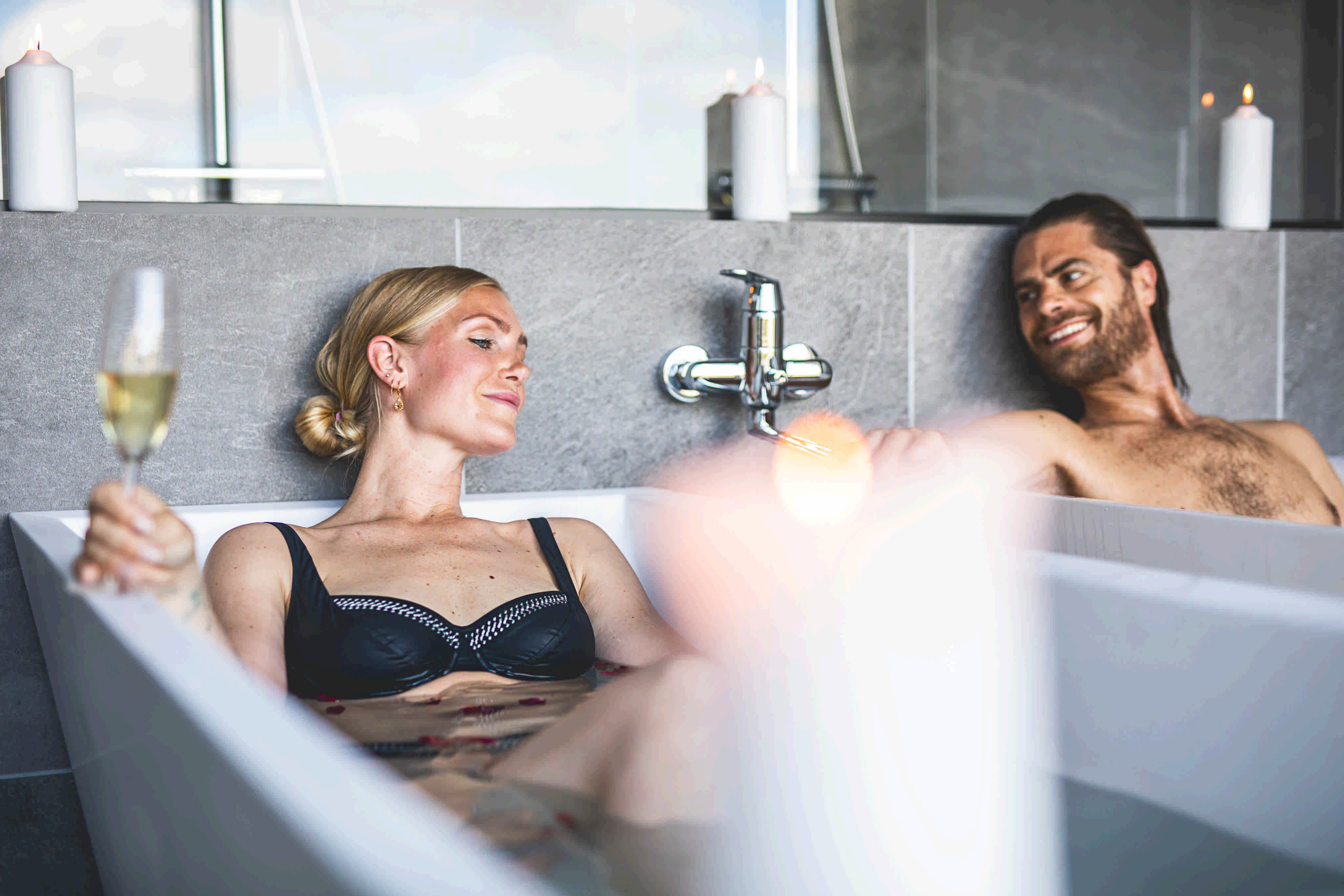 In our spa area, we offer several different sensory baths in the spa suite. In warm baths, you can enjoy aromatic scents, essential oils, relaxing music, and complete togetherness while we serve a delicious platter of drinks and snacks. Choose between the popular C-vitamin boost, our fragrant WORLD bath, a softening milk bath, or our fresh anti-inflammatory bath. Remember to book well in advance to get the time slots that suit you best.